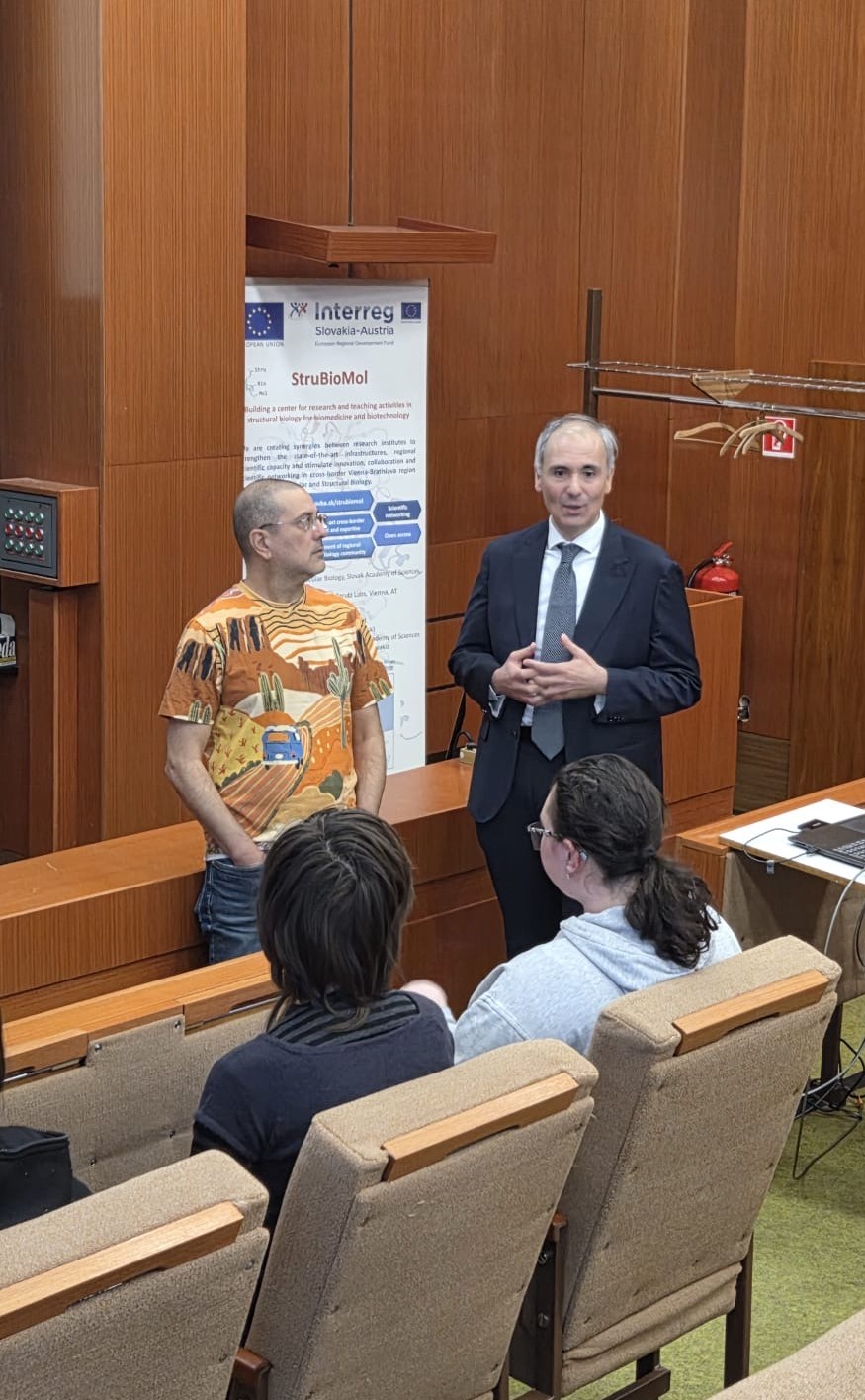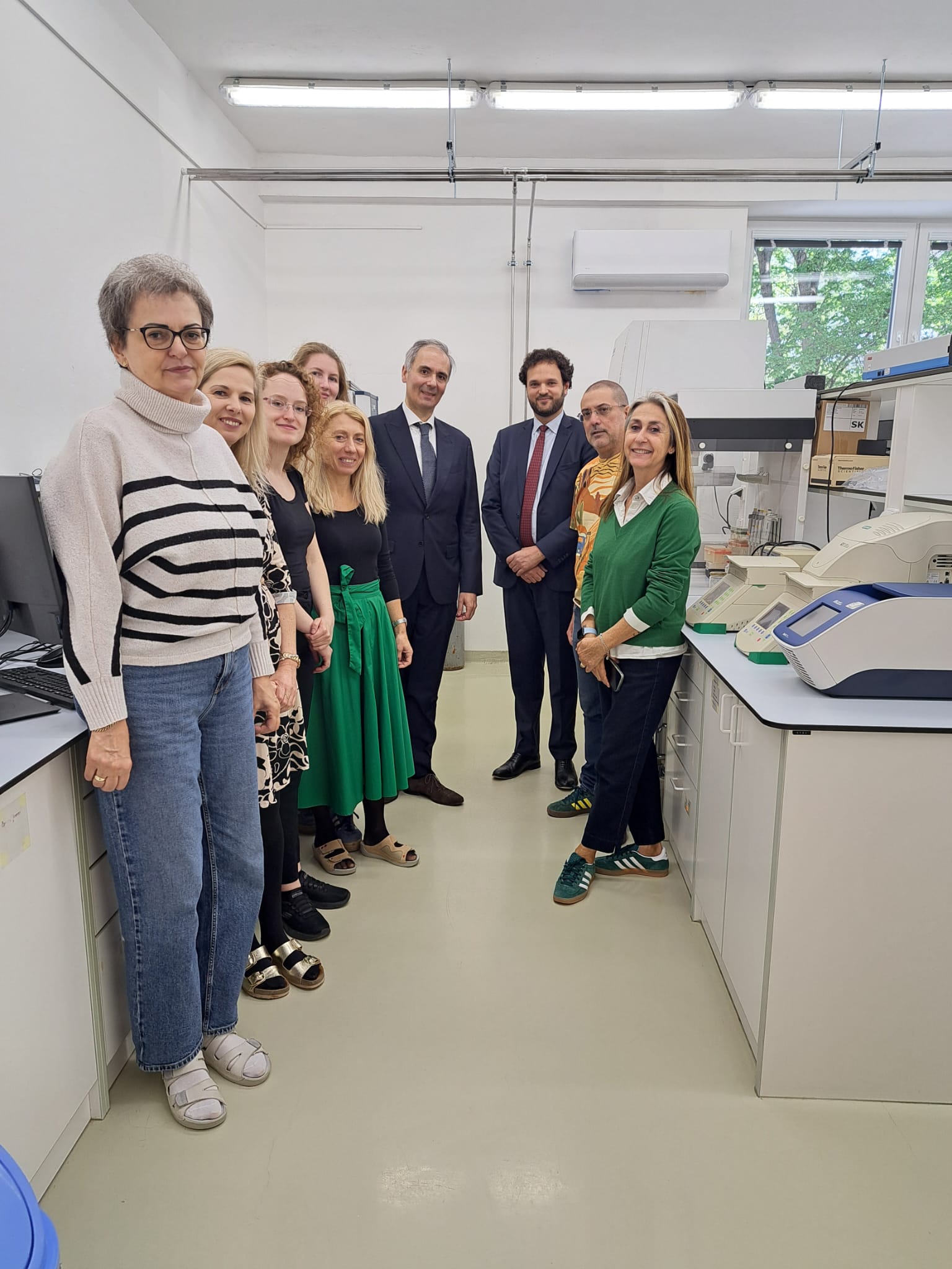 In occasione della IX edizione della Giornata della Ricerca italiana nel mondo, l’Ambasciatore De Felice ha incontrato il Presidente dell’Accademia Slovacca delle Scienze, Prof. Martin Venhart, con cui ha affrontato il tema del rafforzamento della collaborazione bilaterale nei settori delle applicazioni industriali della ricerca e della promozione della partecipazione congiunta a programmi internazionali, in particolare nei settori STEM. Al termine dell’incontro l’Ambasciatore ha aperto un seminario di studio destinato a studenti slovacchi di scuola superiore presso l’Istituto di Biologia Molecolare dell’Accademia delle Scienze, organizzato dalla Prof.ssa Mara Paolini e moderato dal Dott. Domenico Pangallo, Direttore del Dipartimento di Biologia Molecolare. L’Ambasciatore De Felice ha poi visitato i laboratori, ove sono in corso importanti ricerche sulla biologia a servizio del recupero di opere d’arte in collaborazione con Università ed Enti di ricerca italiani.