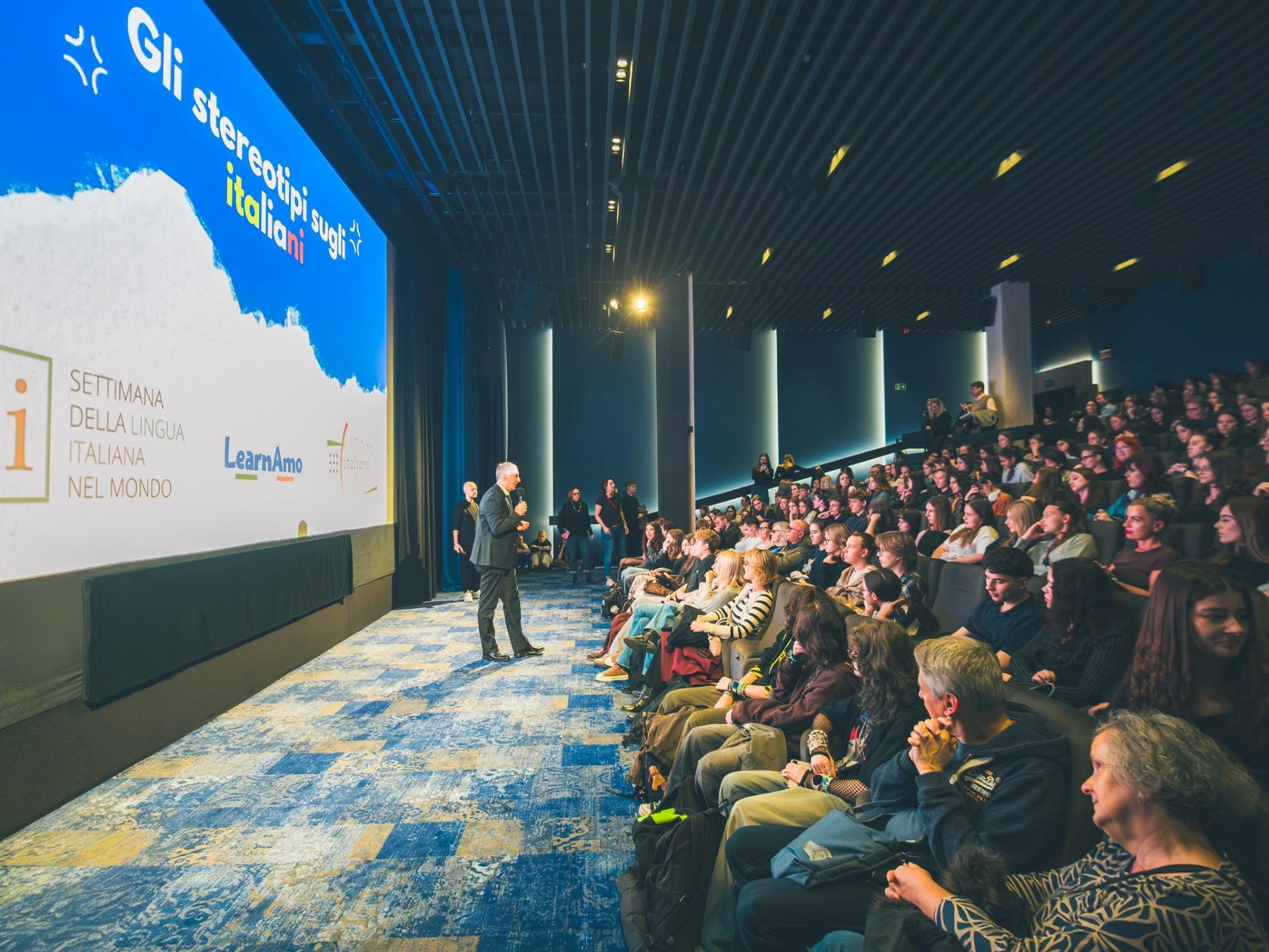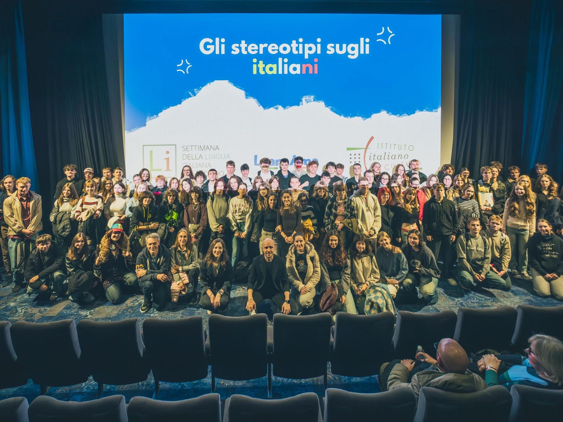 Viac ako dvesto študentov taliančiny sa zúčastnilo stretnutia zorganizovaného @Italyinslovakia a @iicbratislava, ktoré otvoril veľvyslanec De Felice v kine Lumière. Stereotypy Talianov a reč tela, s osobitným dôrazom na význam najčastejších gest, ktoré sprevádzajú taliančinu, boli predmetom zábavného a poučného predstavenia, ktoré zakončila veľmi úspešná súťaž o ceny. Slovenská mládež miluje Taliansko a taliančinu a každý deň to dáva najavo!