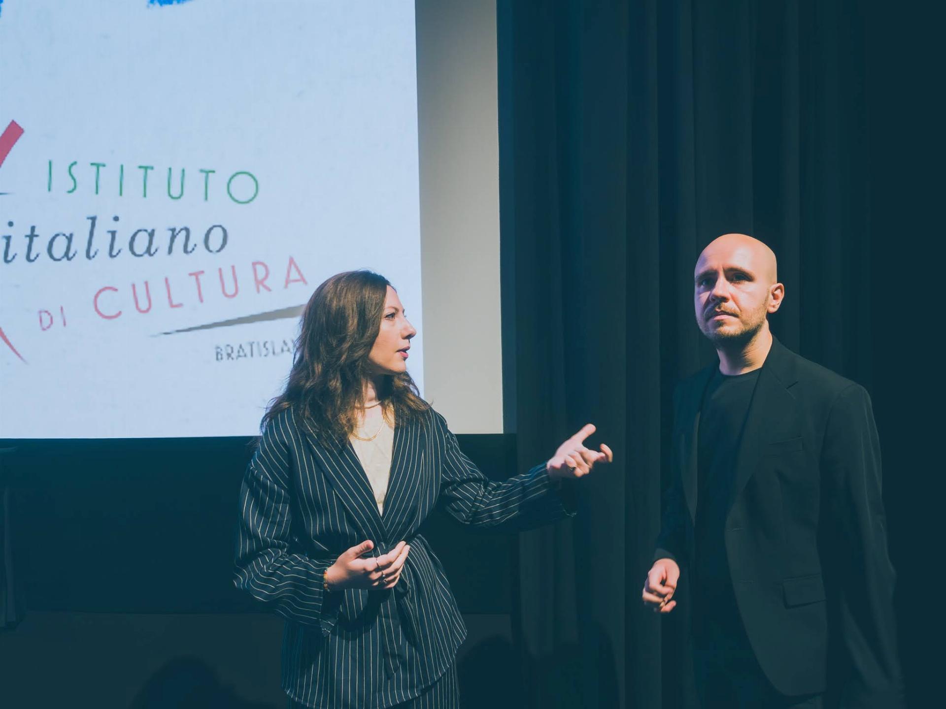 #SLIM2025. Veľký úspech u publika zaznamenalo stretnutie s @grazianafilomeno a @roccodabellonio, animátormi @learnamo, ktorí navštívili Bratislavu pri príležitosti Týždňa talianskeho jazyka vo svete.