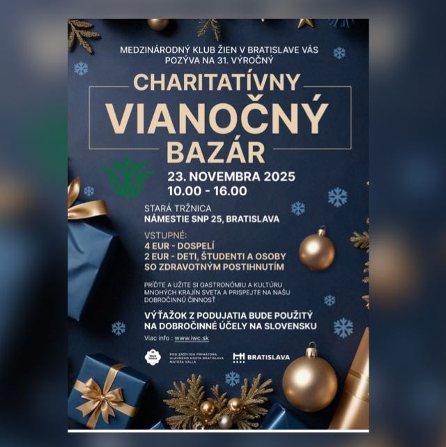 Taliansko sa v roku 2025 zúčastňuje na benefičnom vianočnom trhu bratislavskej Asociácie manželiek diplomatov, ktorý sa konal v Starej tržnici. Stánok plný špecialít, ktoré verejnosť skutočne ocenila, je krásnym prejavom solidarity. Ďakujeme animátorom nášho stánku a podnikateľom za ich veľkorysosť!